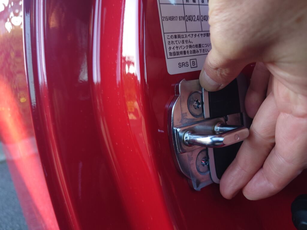 手順としてはプラスネジで留まっているドアストライカーを取り外します。(ちなみに私は手持ちのプラスドライバーでははずせない程固かったのでアストロプロダクツでボックスレンチのプラスドライバーを購入しました)