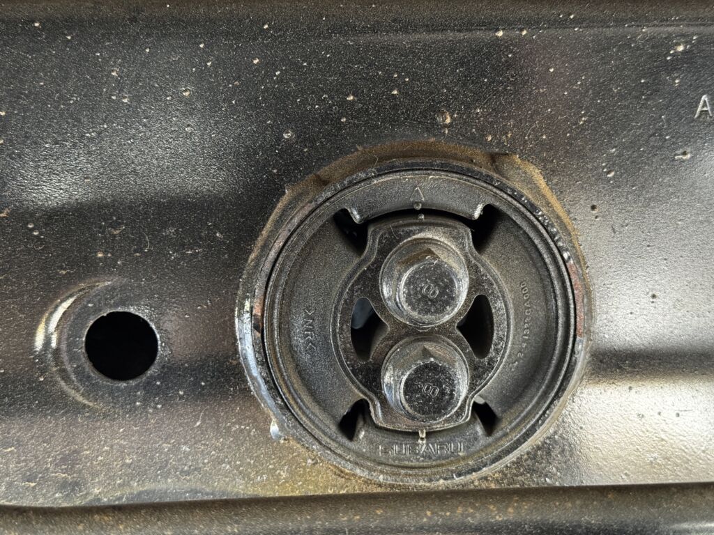 下記画像は後ろから見て左側のデフマウント。後方からはヒビは確認できないが12年以上経過していれば劣化はしているはず。