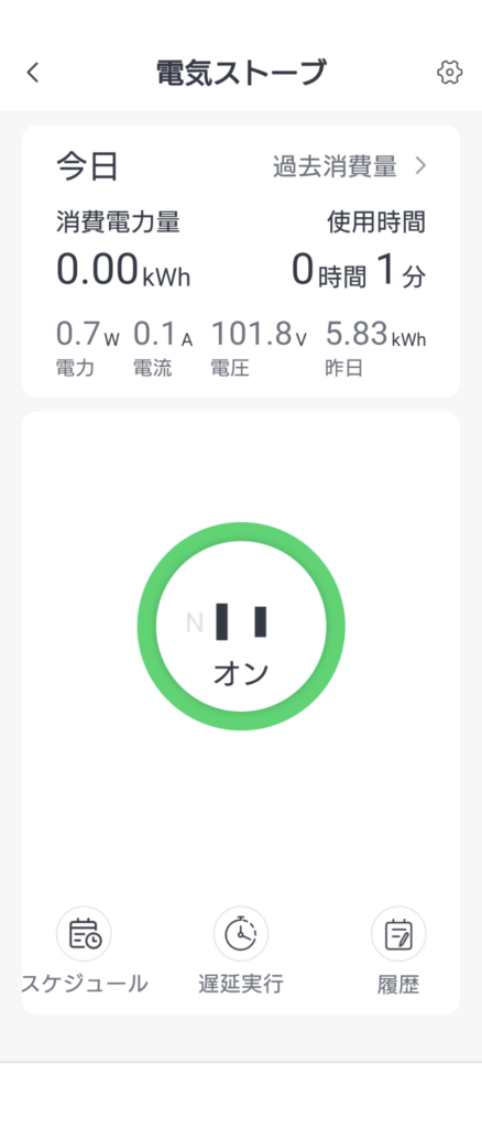こんな感じで消費電力やコンセントの状況も把握できるので「ストーブ消し忘れたかも」という時も遠隔で確認し操作できるので安心です。