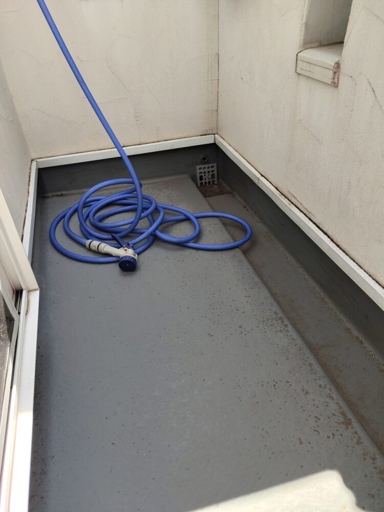 いよいよこれから作業となるわけですがまずはベランダ床の清掃です。