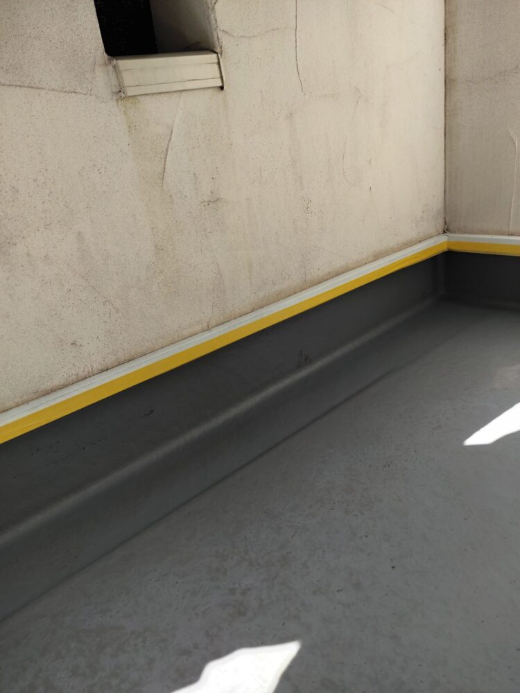 上記の画像は防水塗料塗布2回目が終了し1時間の乾燥時間後にマスキングテープを剥がしたあとの画像となります。いかがでしょうか、私のような素人のDIYでもこんな風に綺麗?な仕上がりにできます。