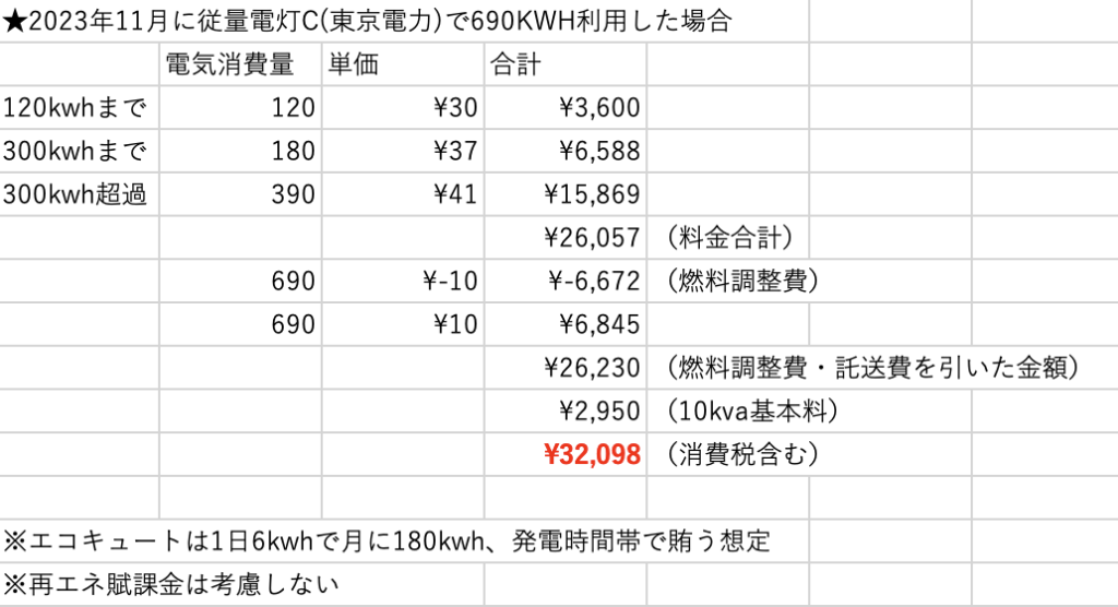 ・発電量は300kwhを想定(375kwhだが300kwhとして計算する)